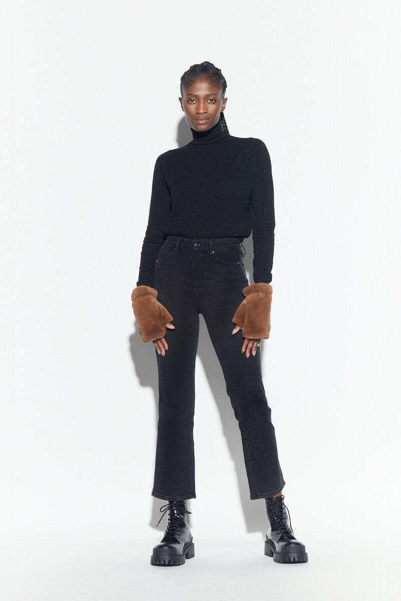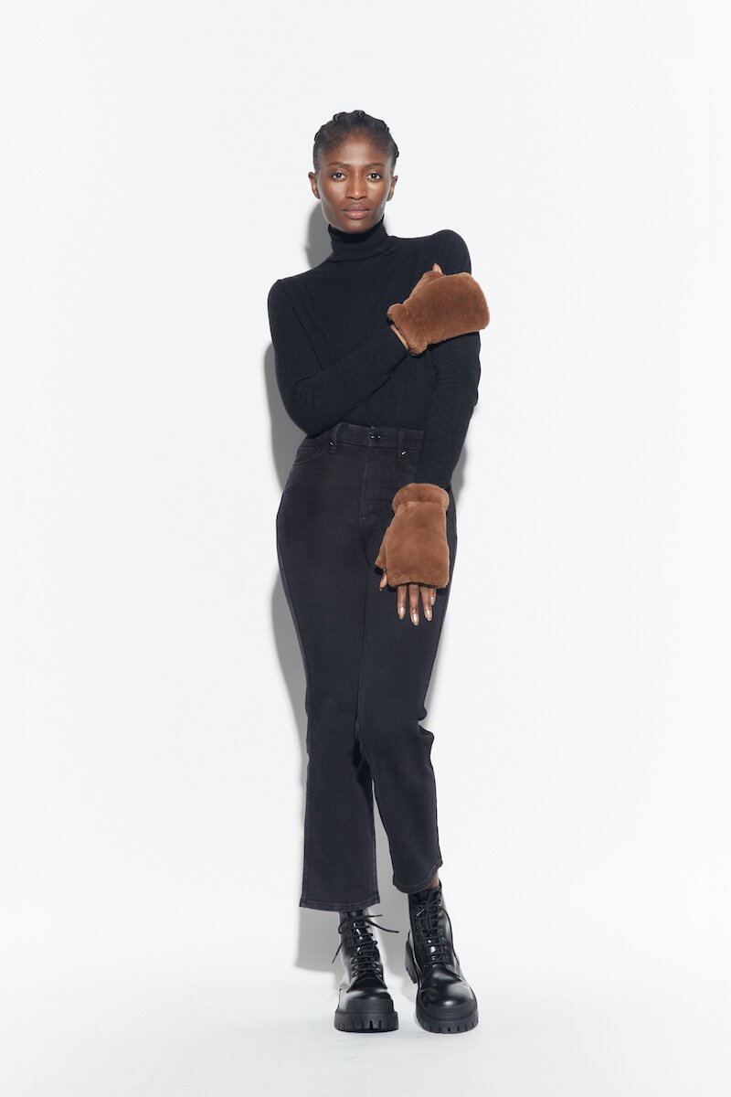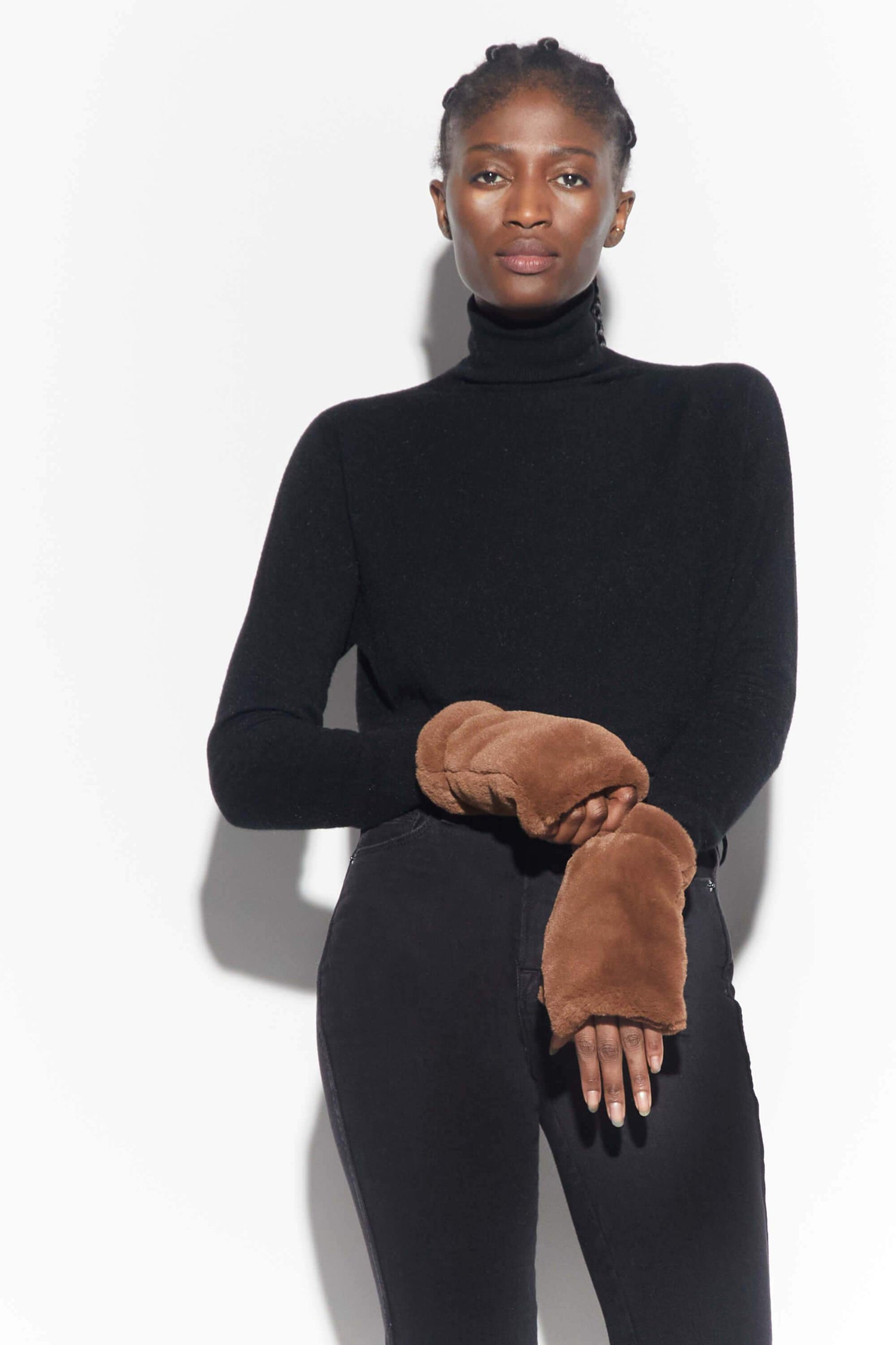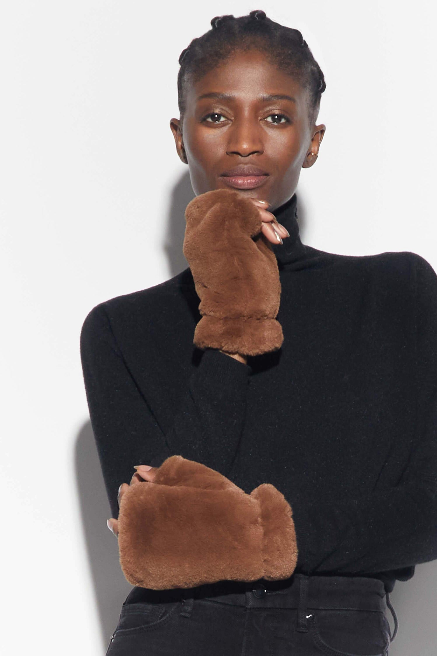 Faux fur fingerless gloves. Shell: 100% polyester; Lining: 100% polyester. Dry Clean Only. Imported.