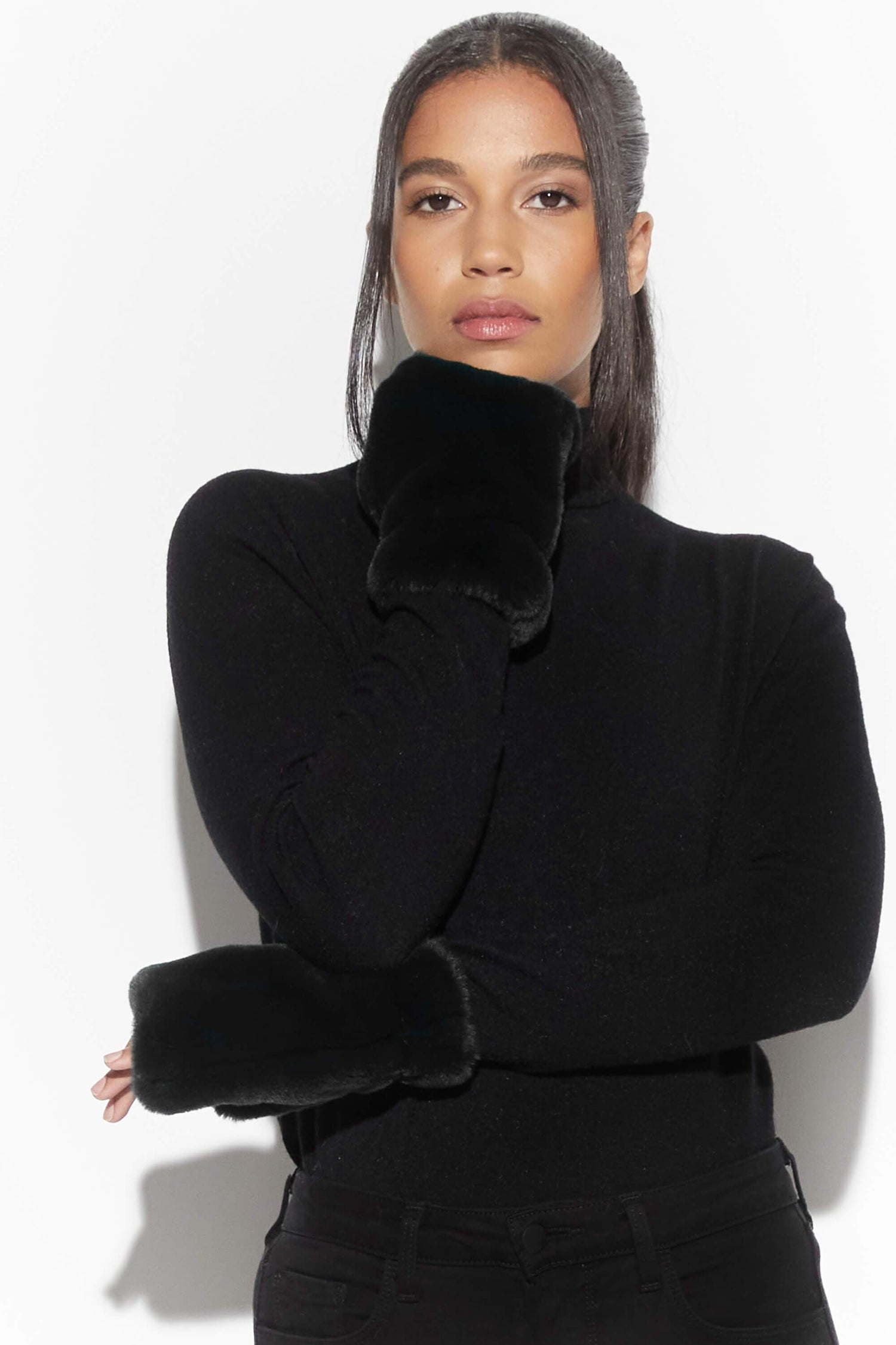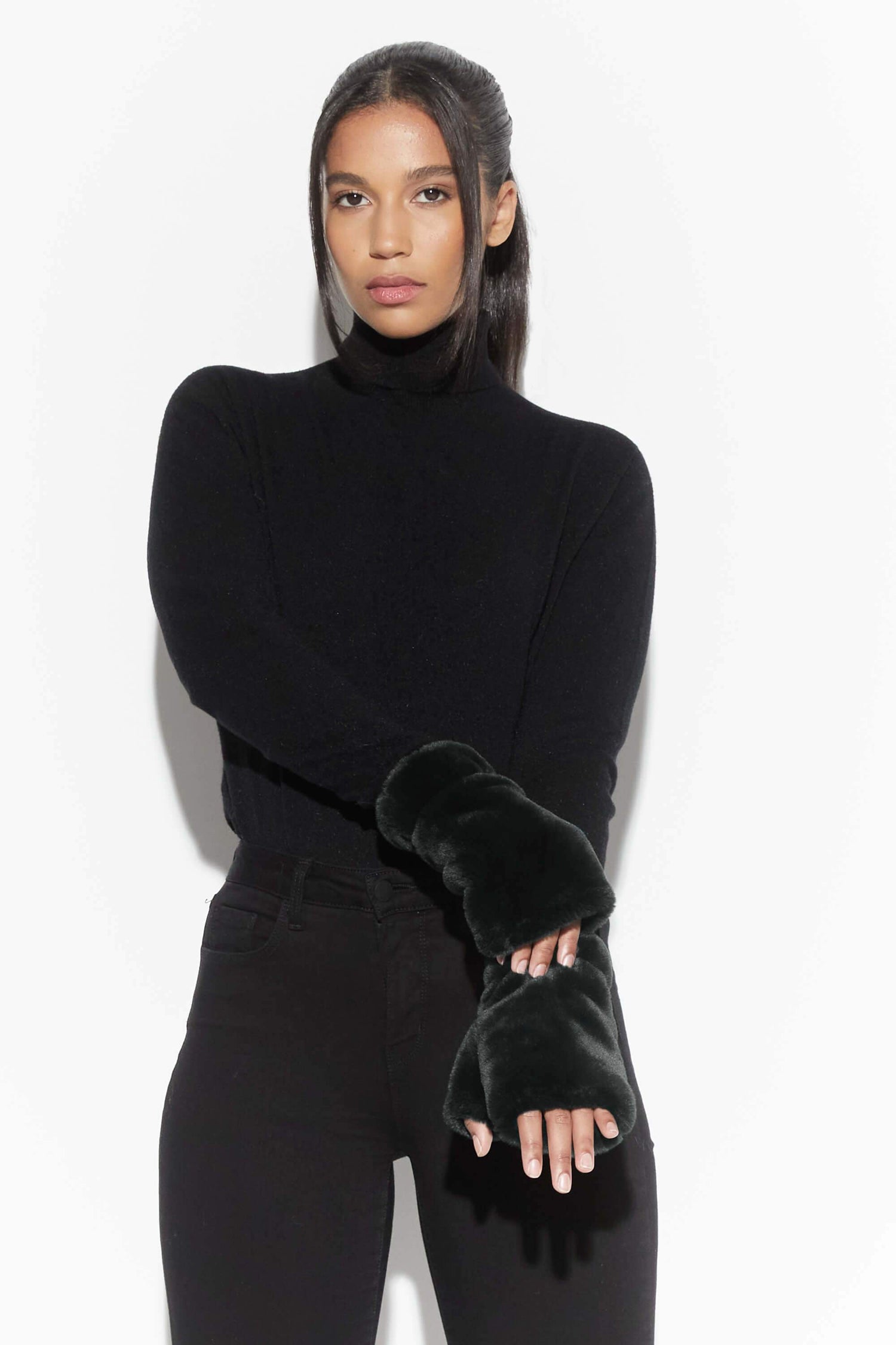 Faux fur fingerless gloves