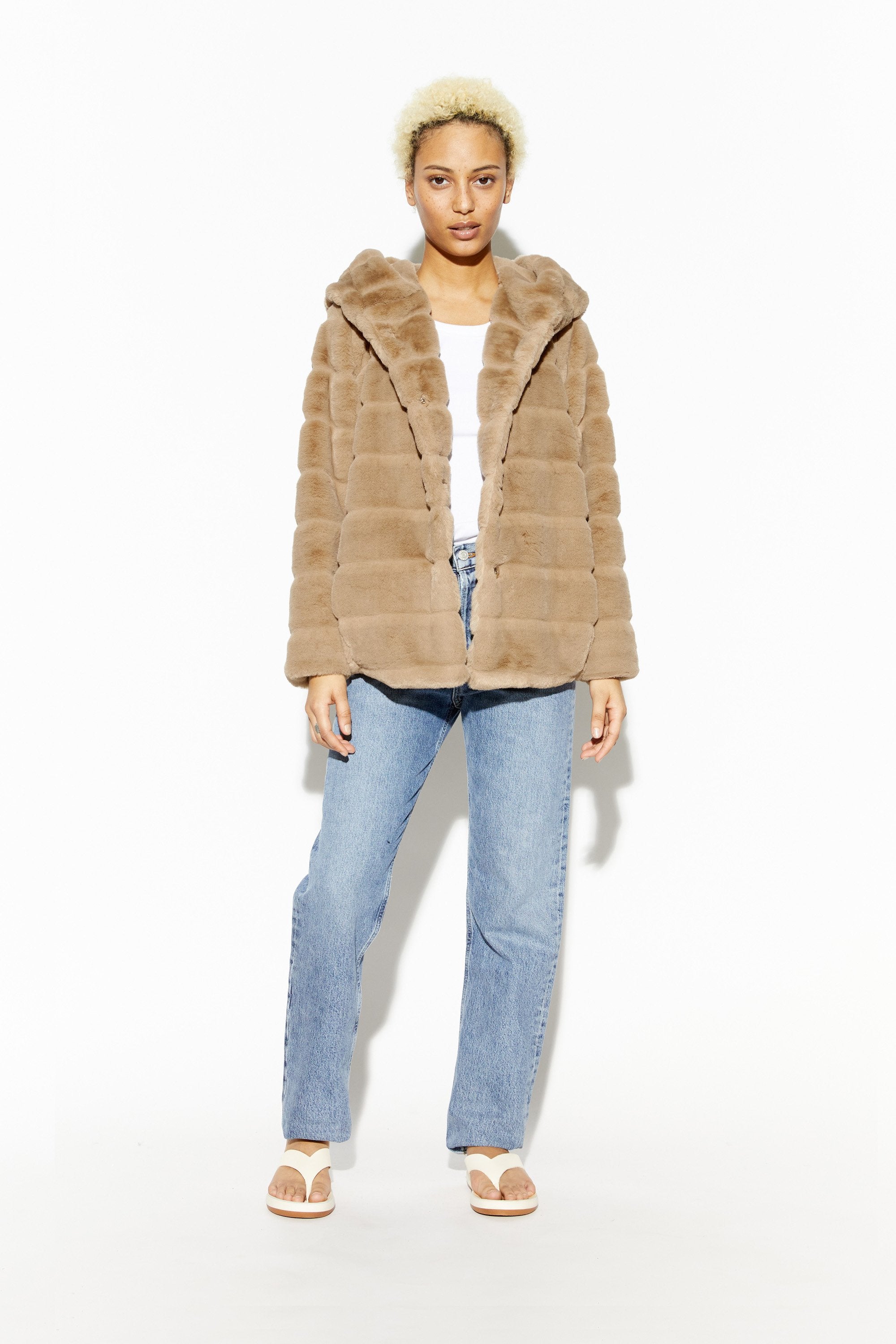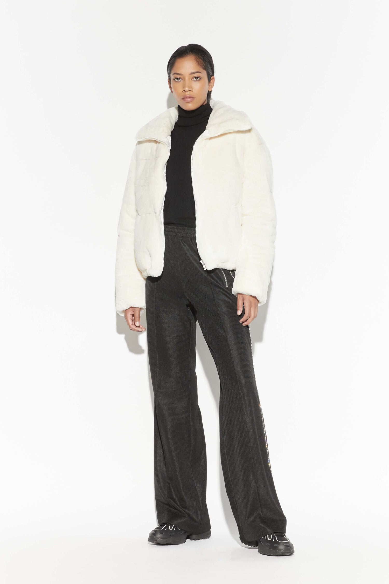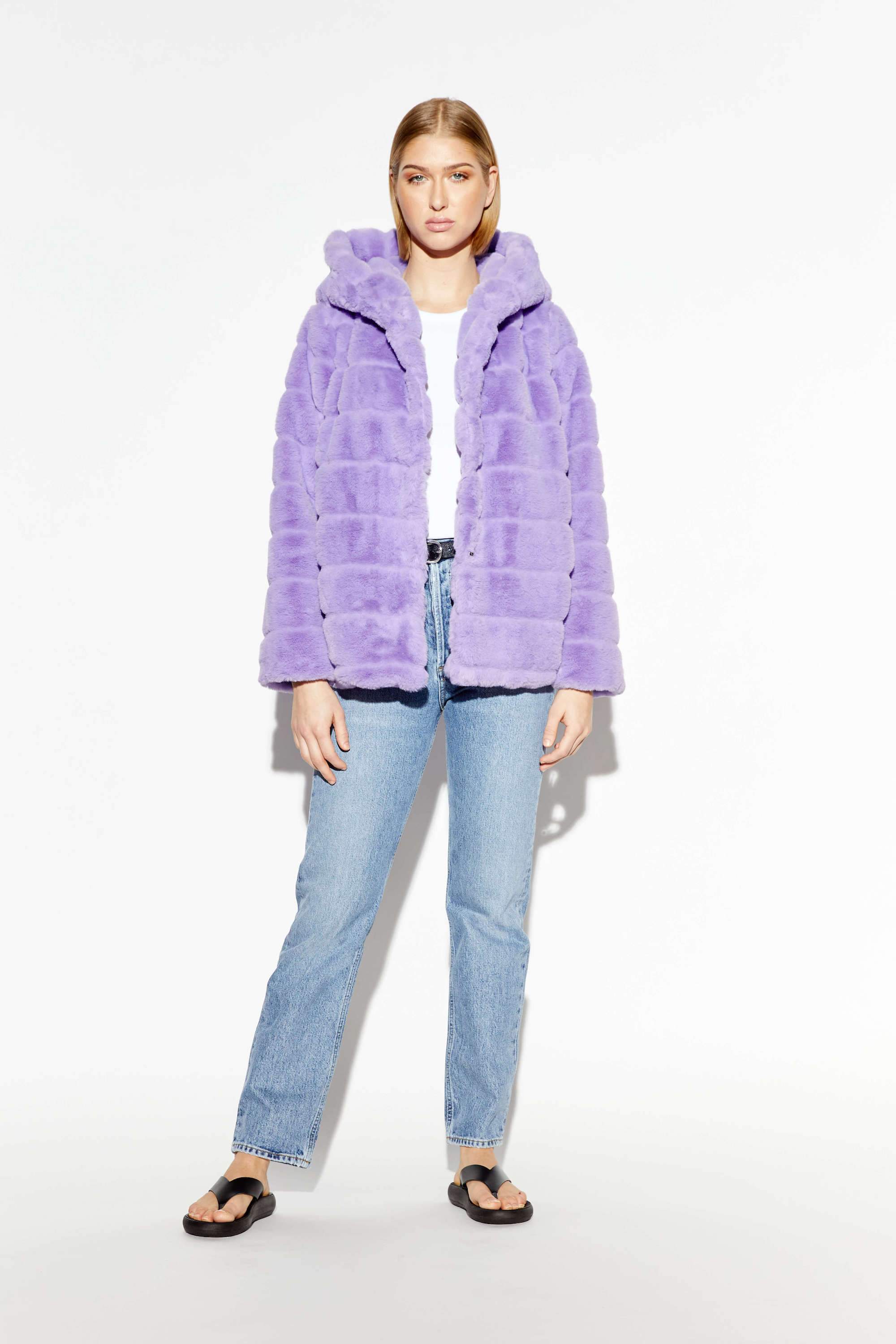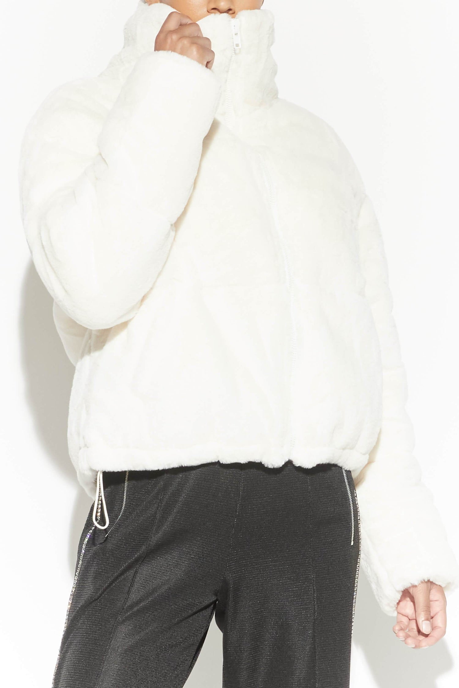 Cropped faux fur puffer jacket
