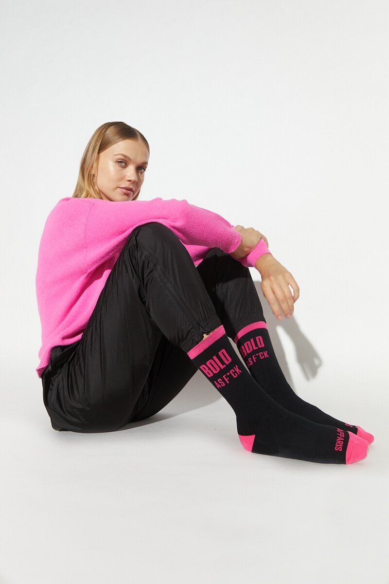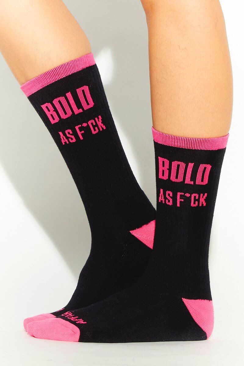 Classic tube sock with "BOLD AS F**CK" slogan. 85% Cotton, 10% Polyester, 5% Spandex. Machine cold wash. Imported.