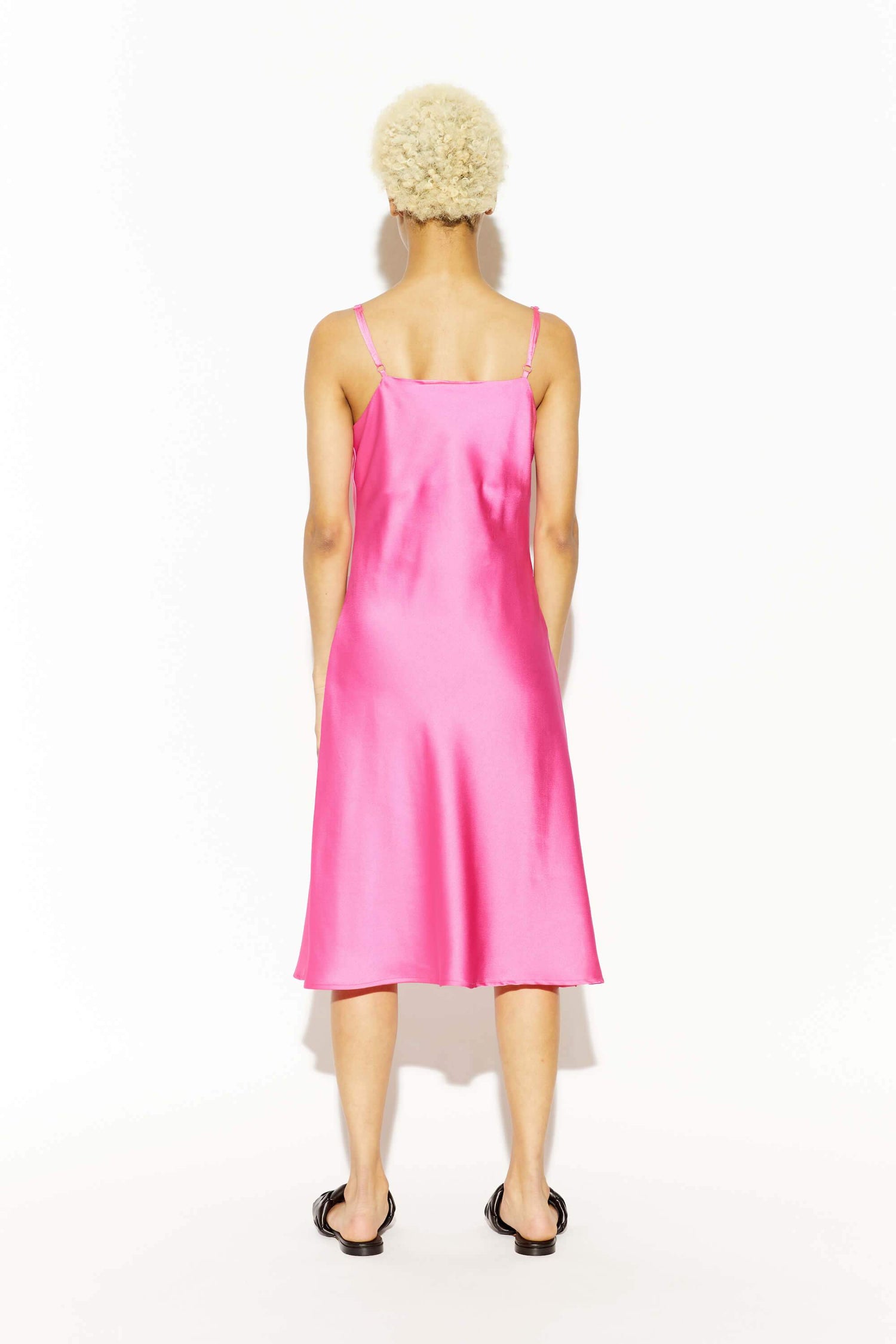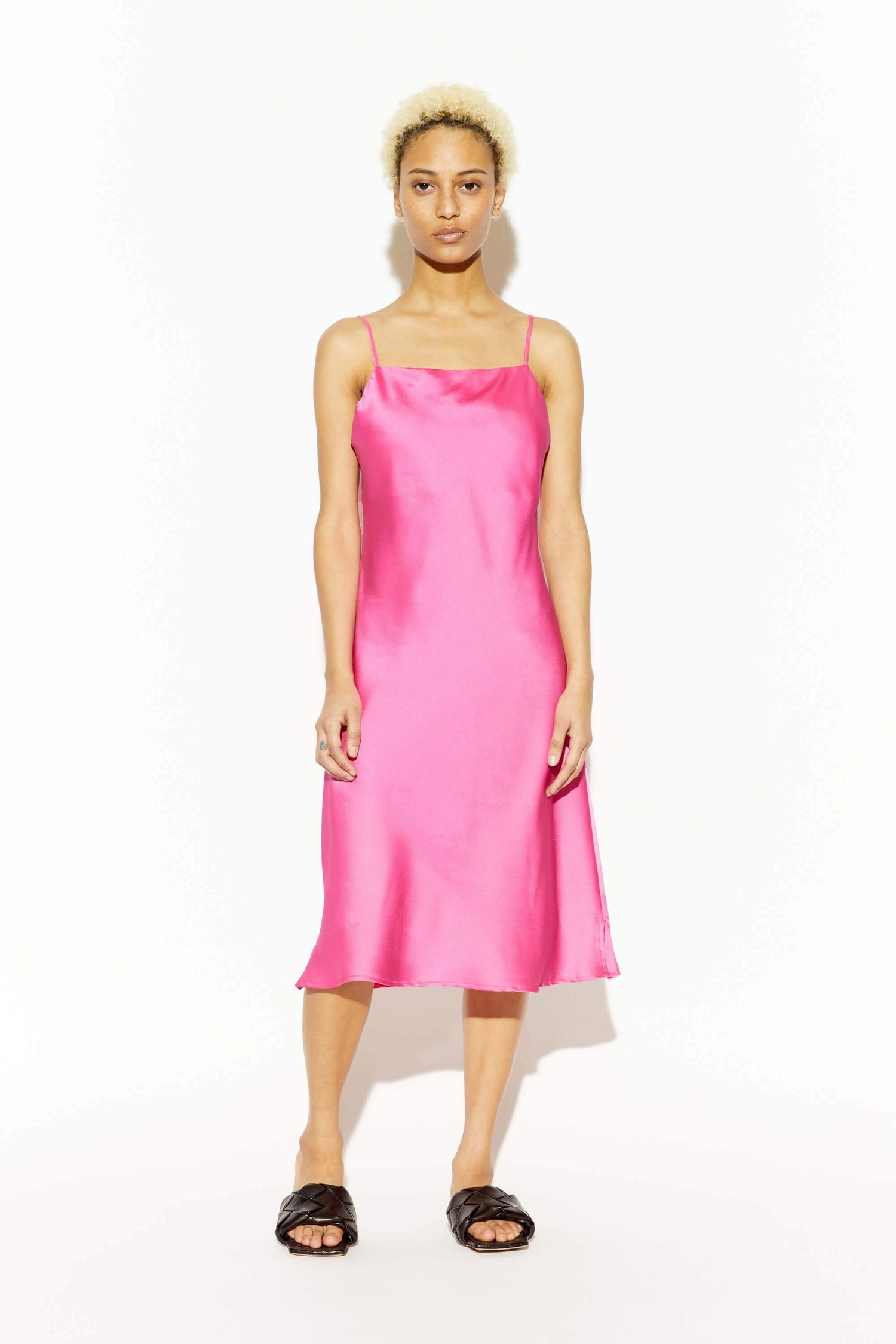 Our CARMEN dress is a staple vegan silk piece. Dress it up with heals or down with sneakers. This midi dress will carry you through the season.