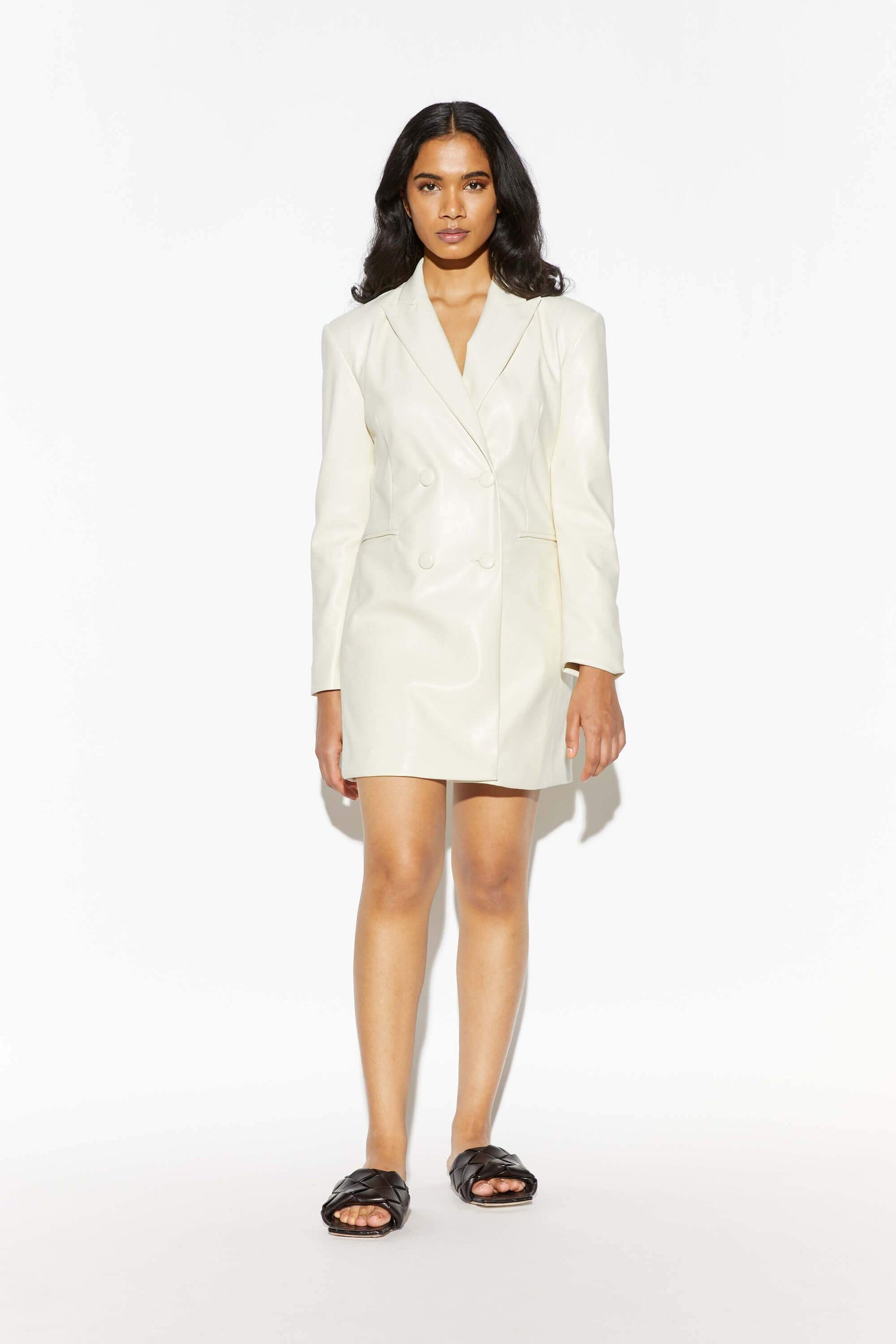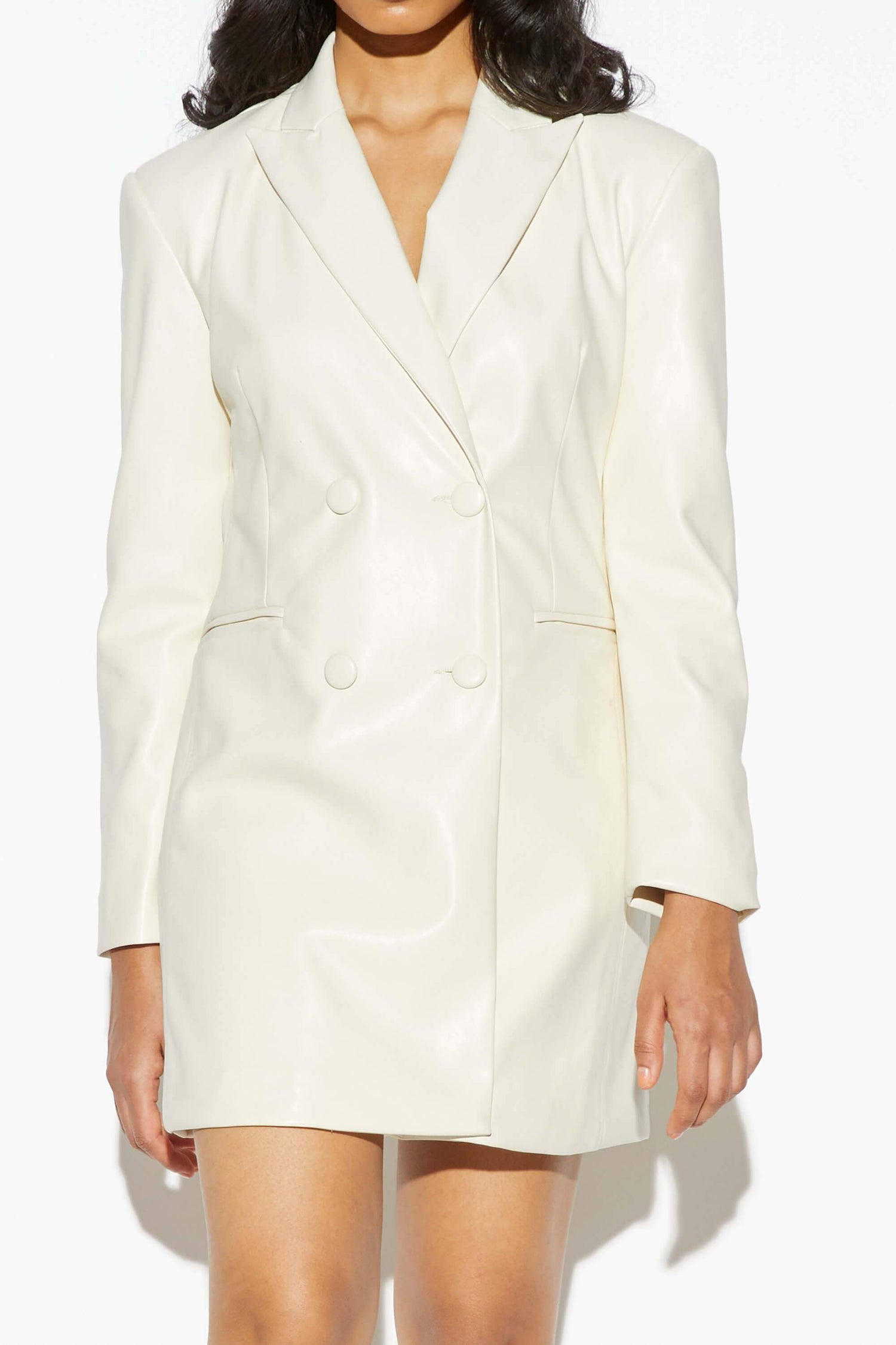 Vegan leather blazer dress.