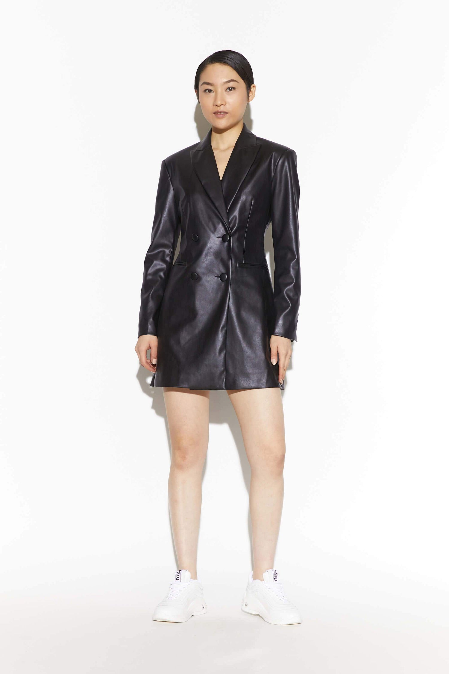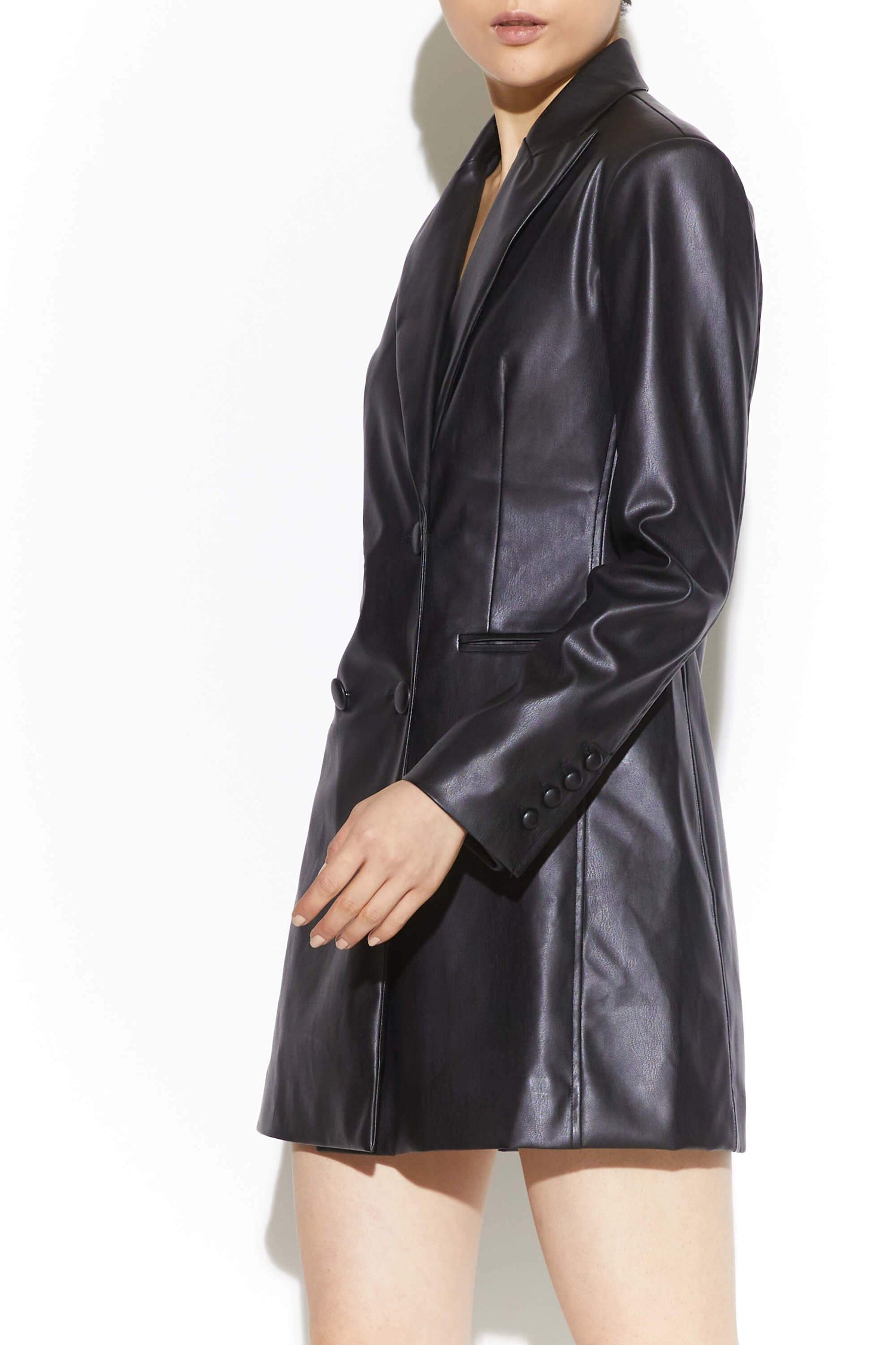 Vegan leather blazer dress.