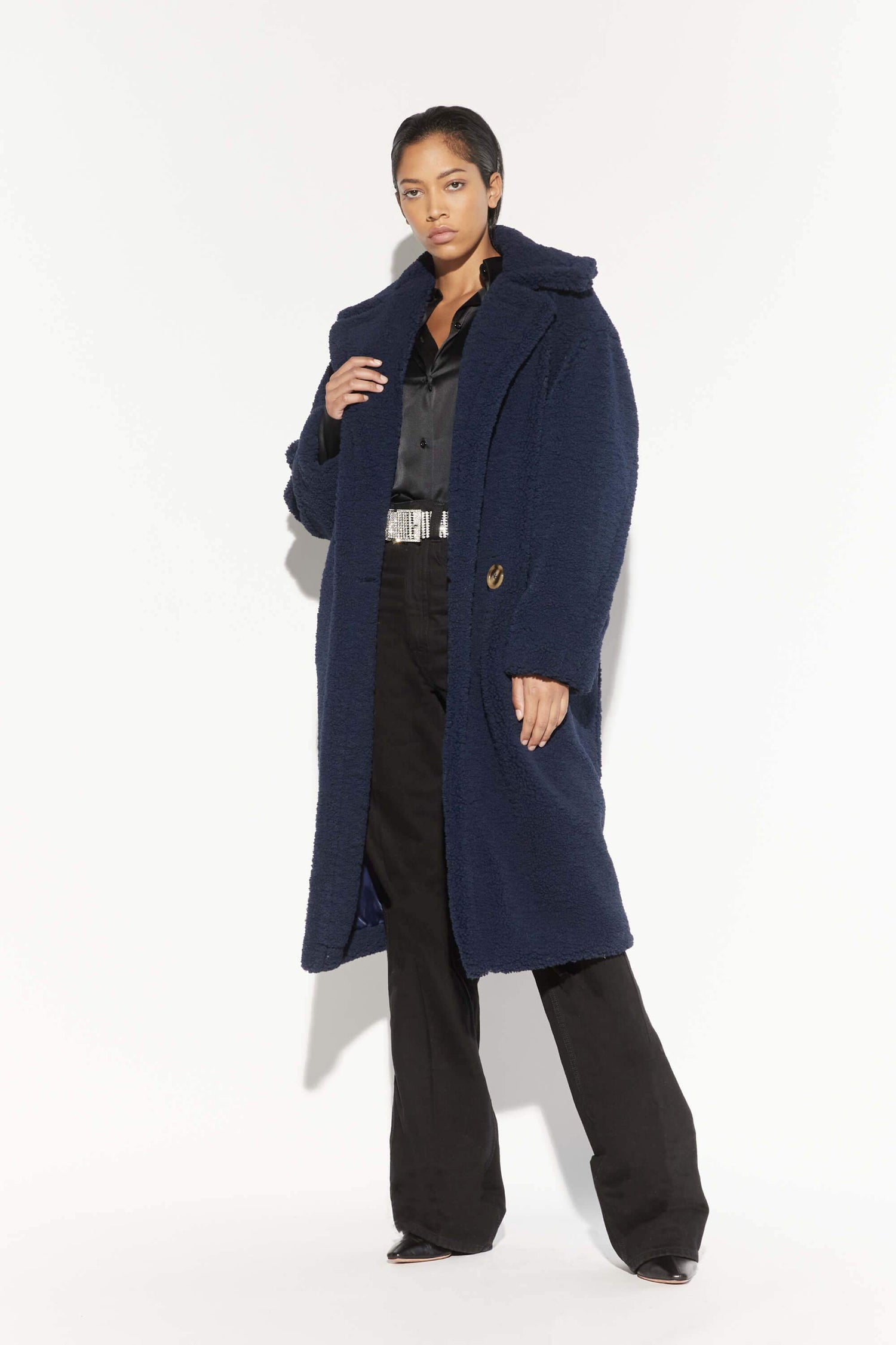 Jada is 5'9" with a 32" bust and is wearing size S. Coat length: 42". Sleeve length: 20.6". Oversized fit: It’s a look—bold and edgy, comfy chic. These styles have plenty of room for tees, sweaters, whatever, so layer away. If you’re petite or want a closer fit, size down.