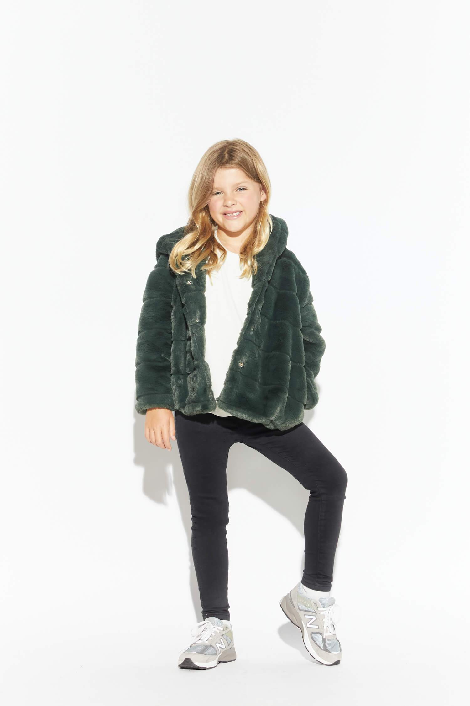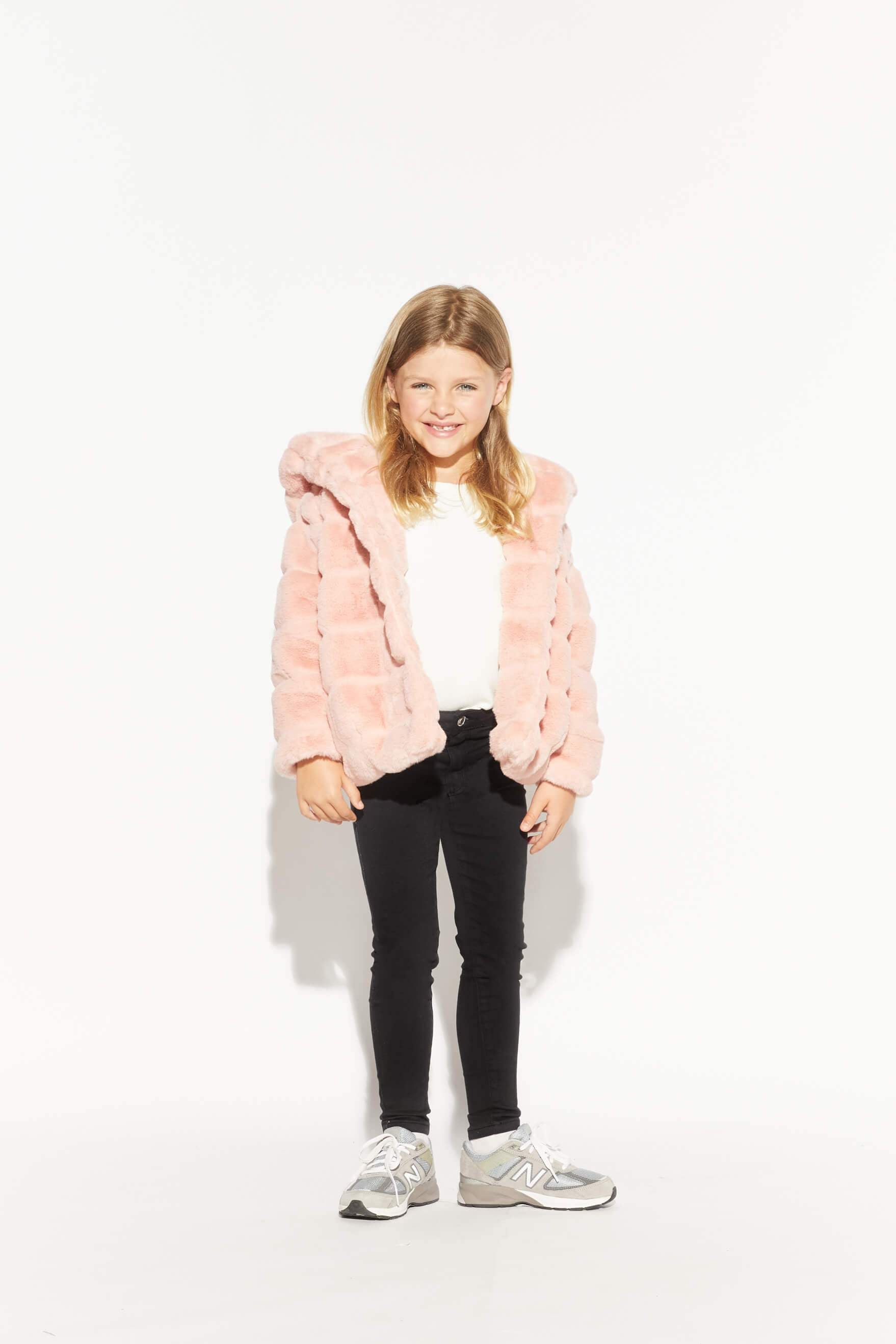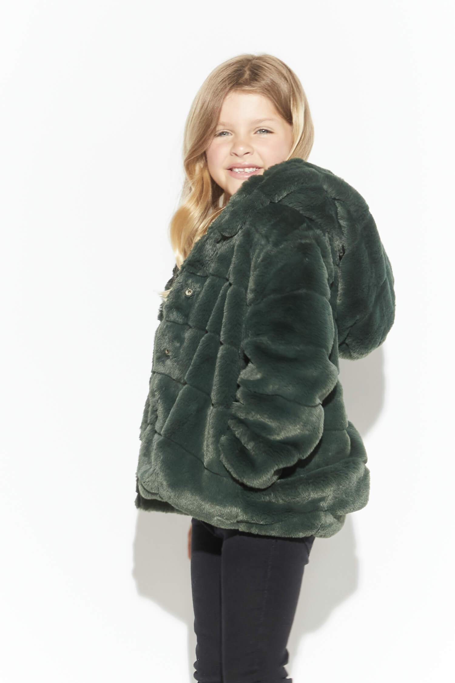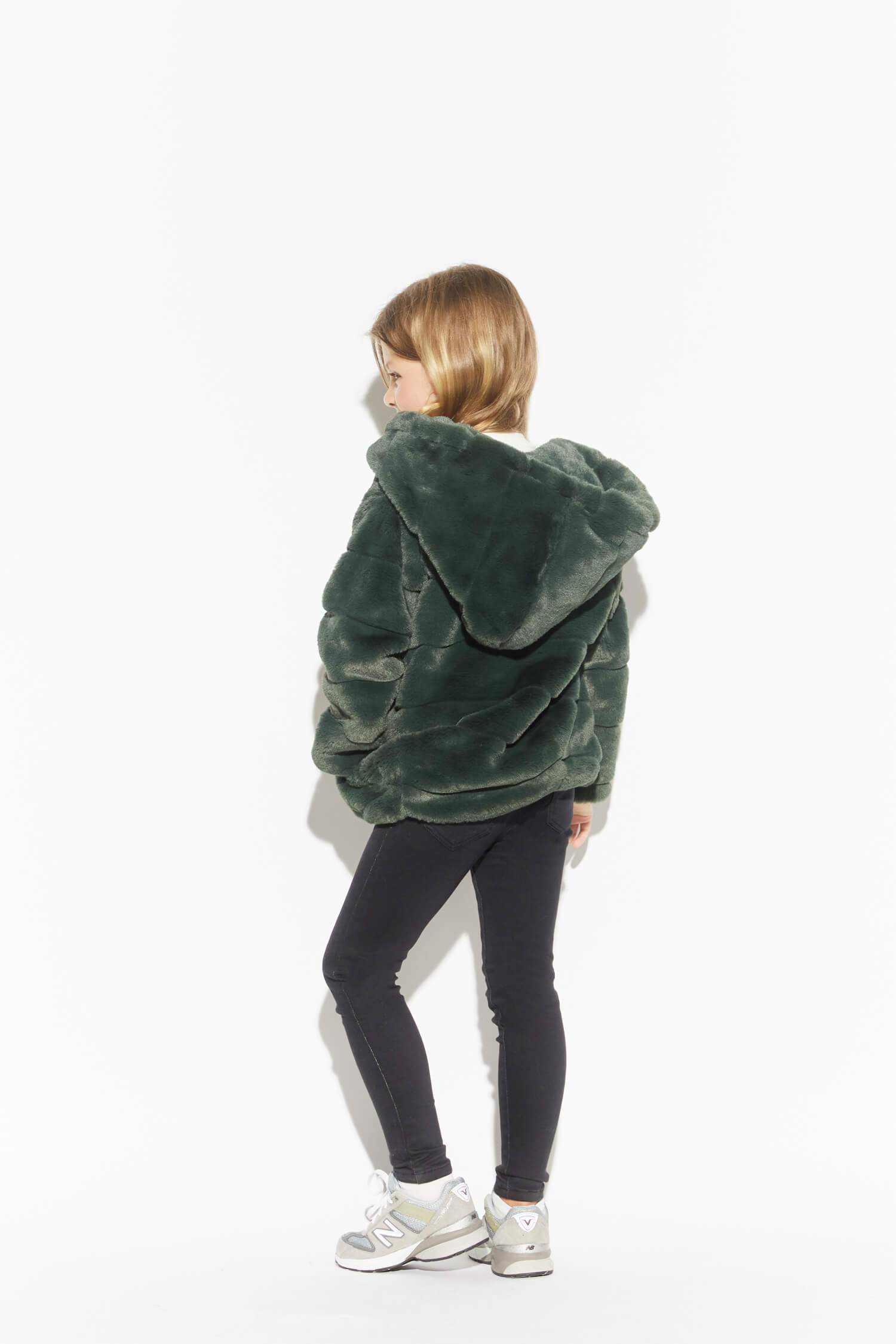 Faux fur oversized hooded children short jacket