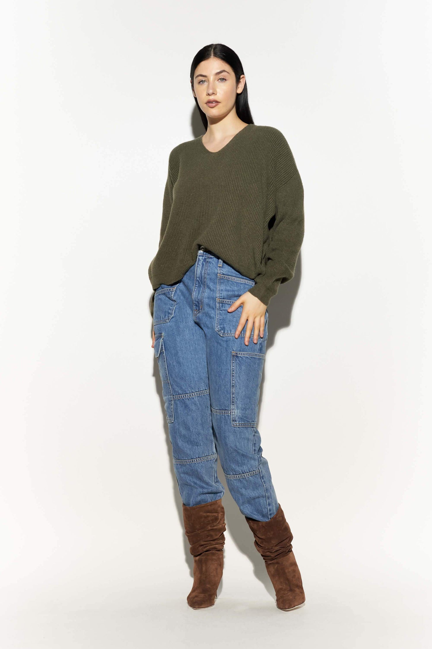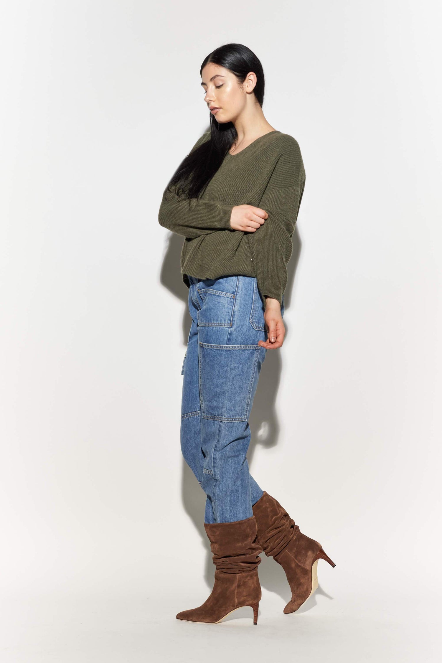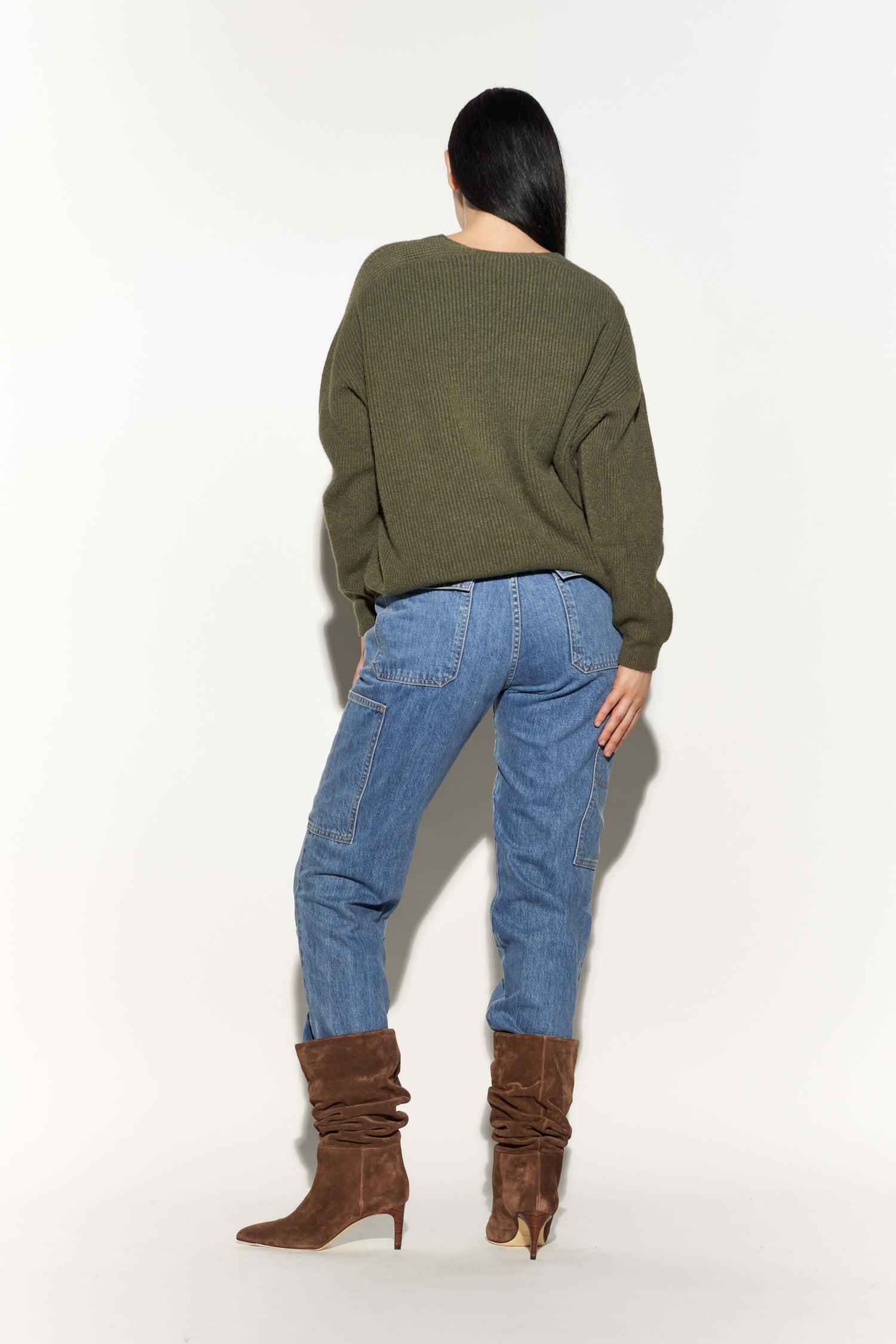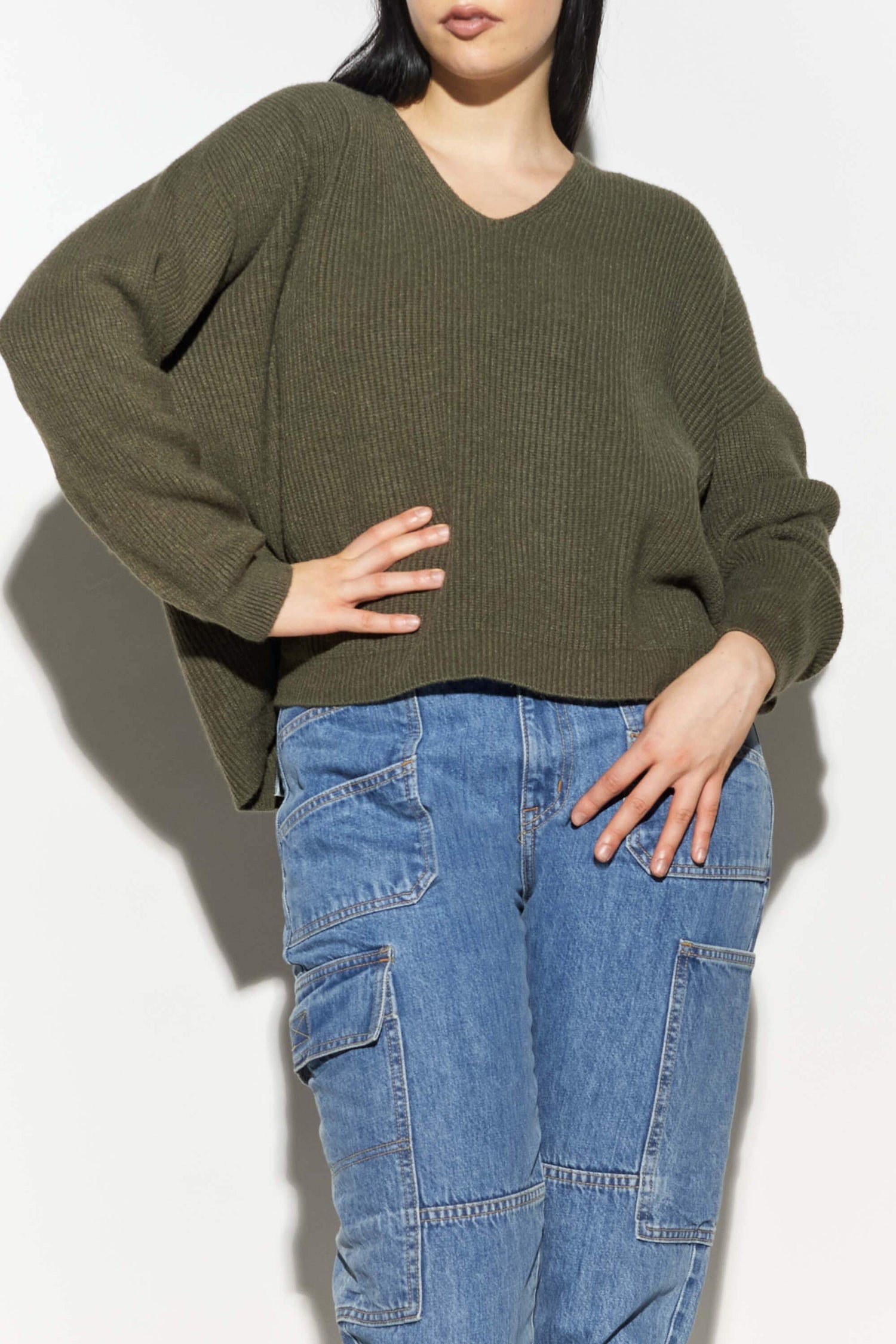 Vegan cashmere ribbed cropped sweater.