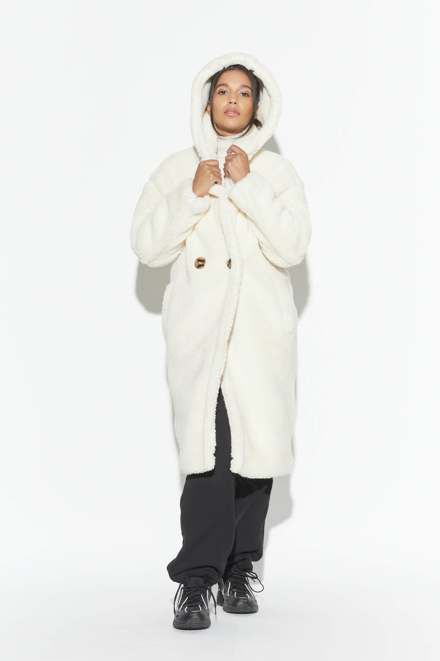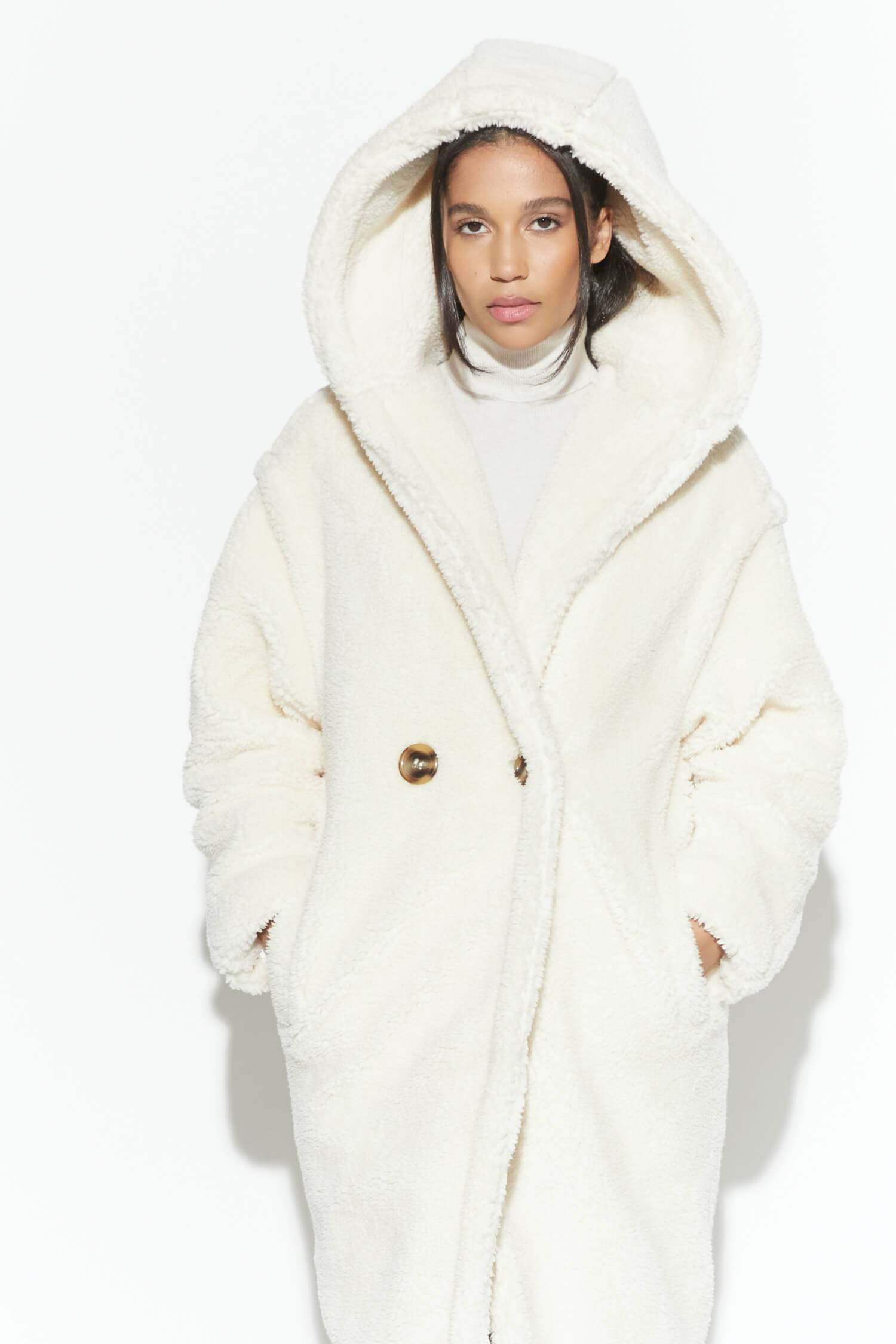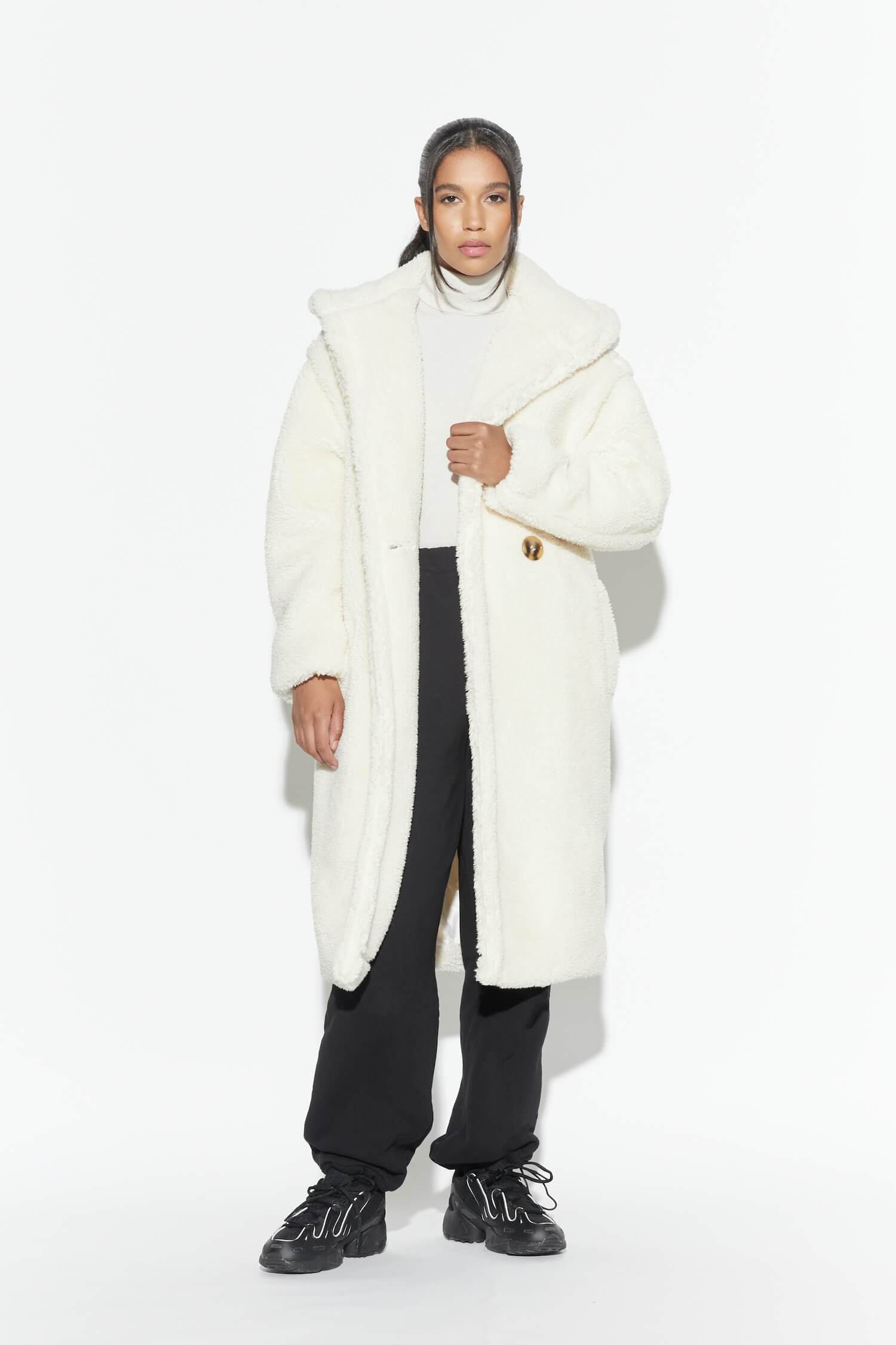 Alana is 5'9" with a 34" bust and is wearing size S. Coat length: 42". Sleeve length: 20.6". Oversized fit: It’s a look—bold and edgy, comfy chic. These styles have plenty of room for tees, sweaters, whatever, so layer away. If you’re petite or want a closer fit, size down.