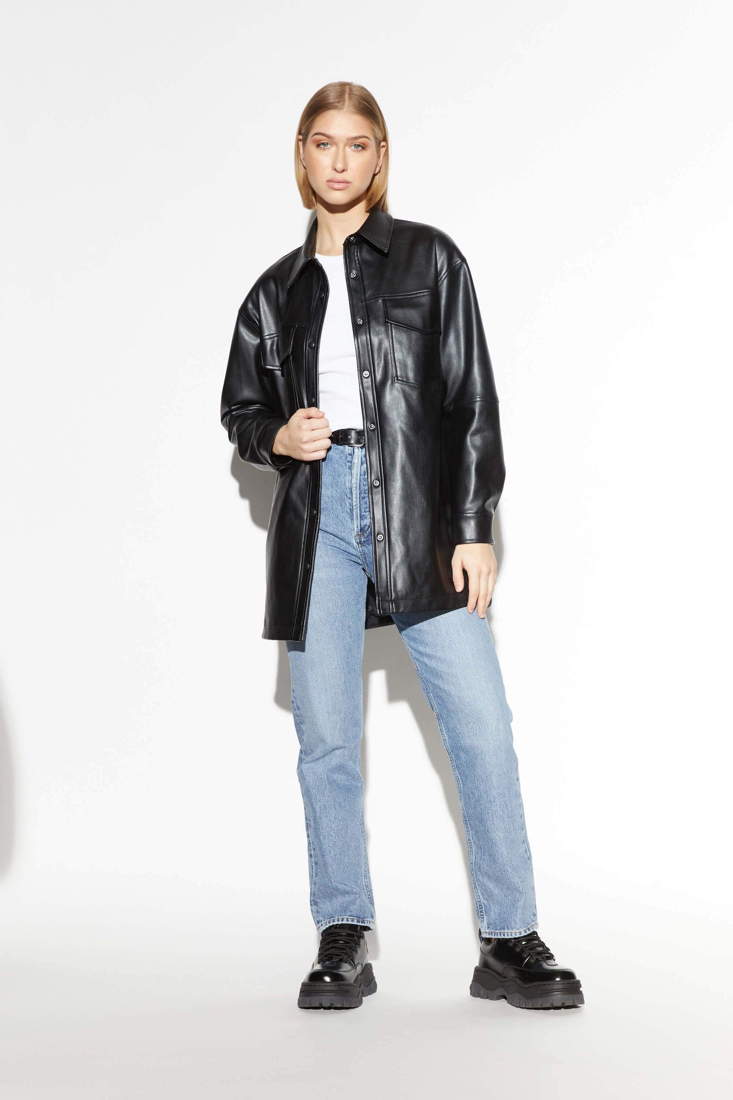 Vegan leather shirt.