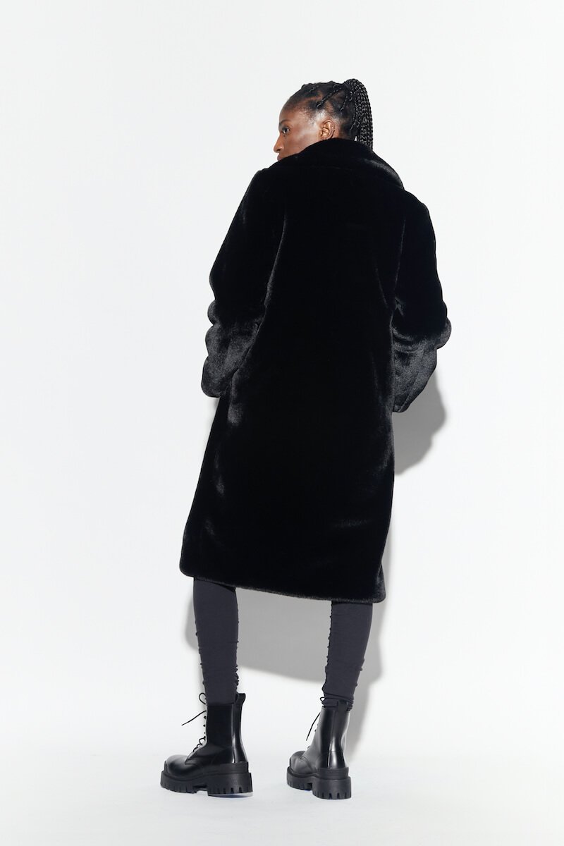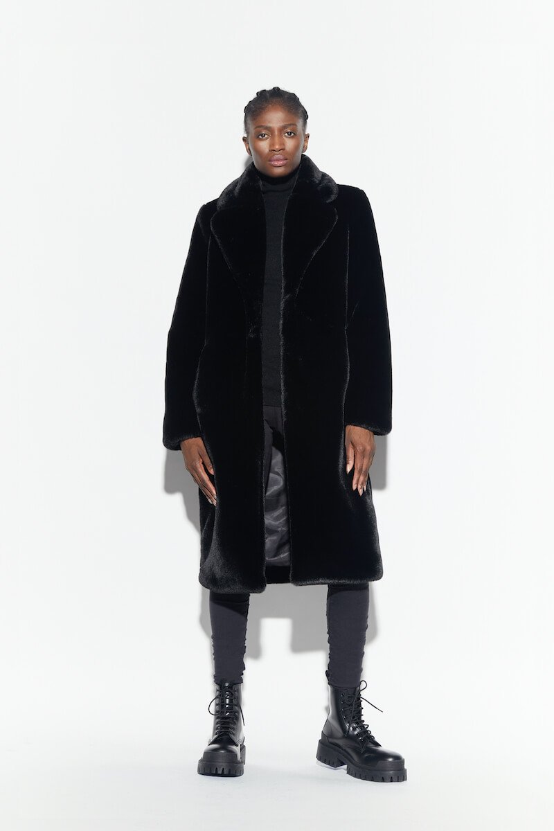 Mamy is 5'10" with a 34" bust and is wearing a size S. Coat length: 43". Sleeve length: 24.8". Regular fit: Roomy, but not too roomy—a standard silhouette. You can layer this style comfortably over a sweater without a problem.