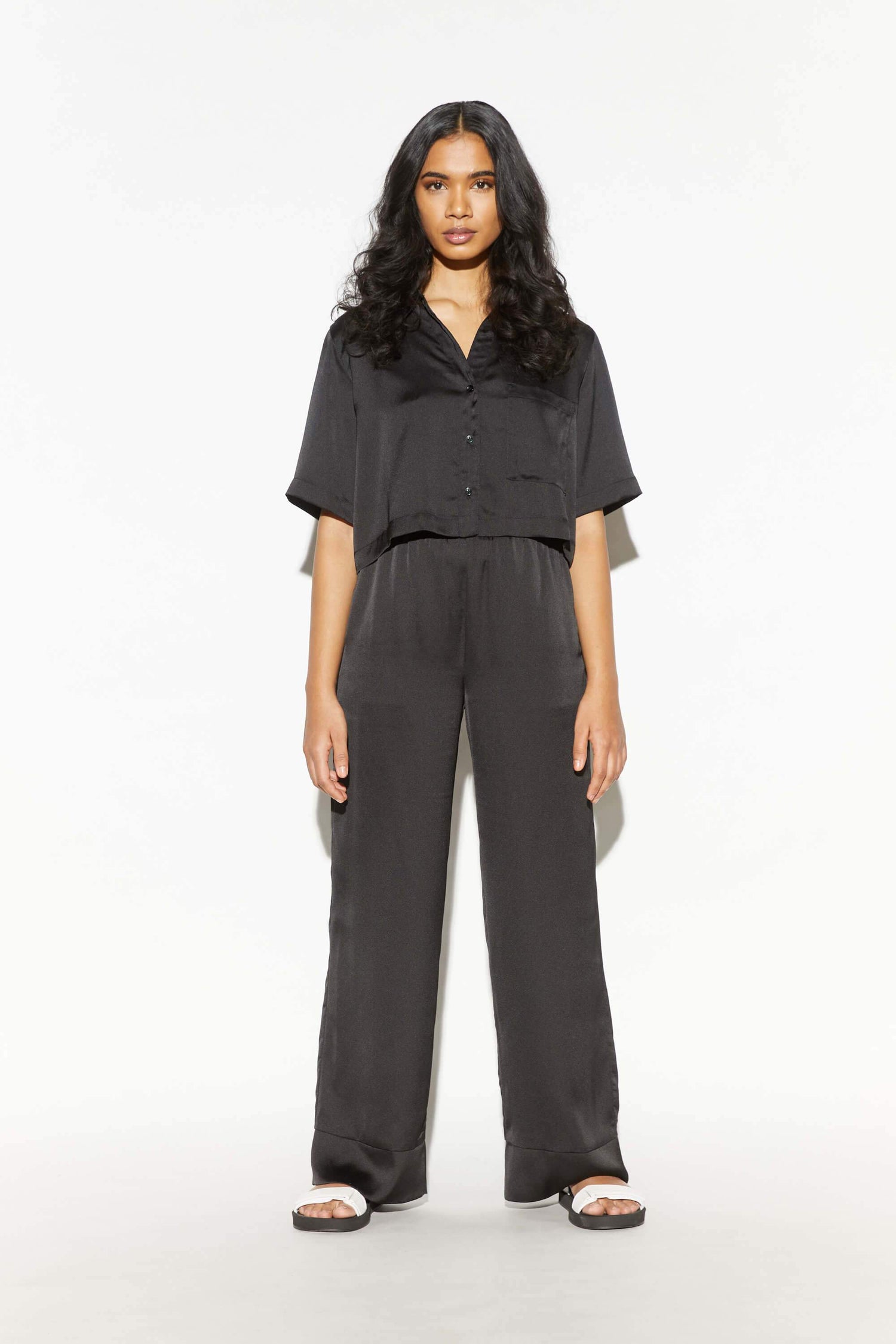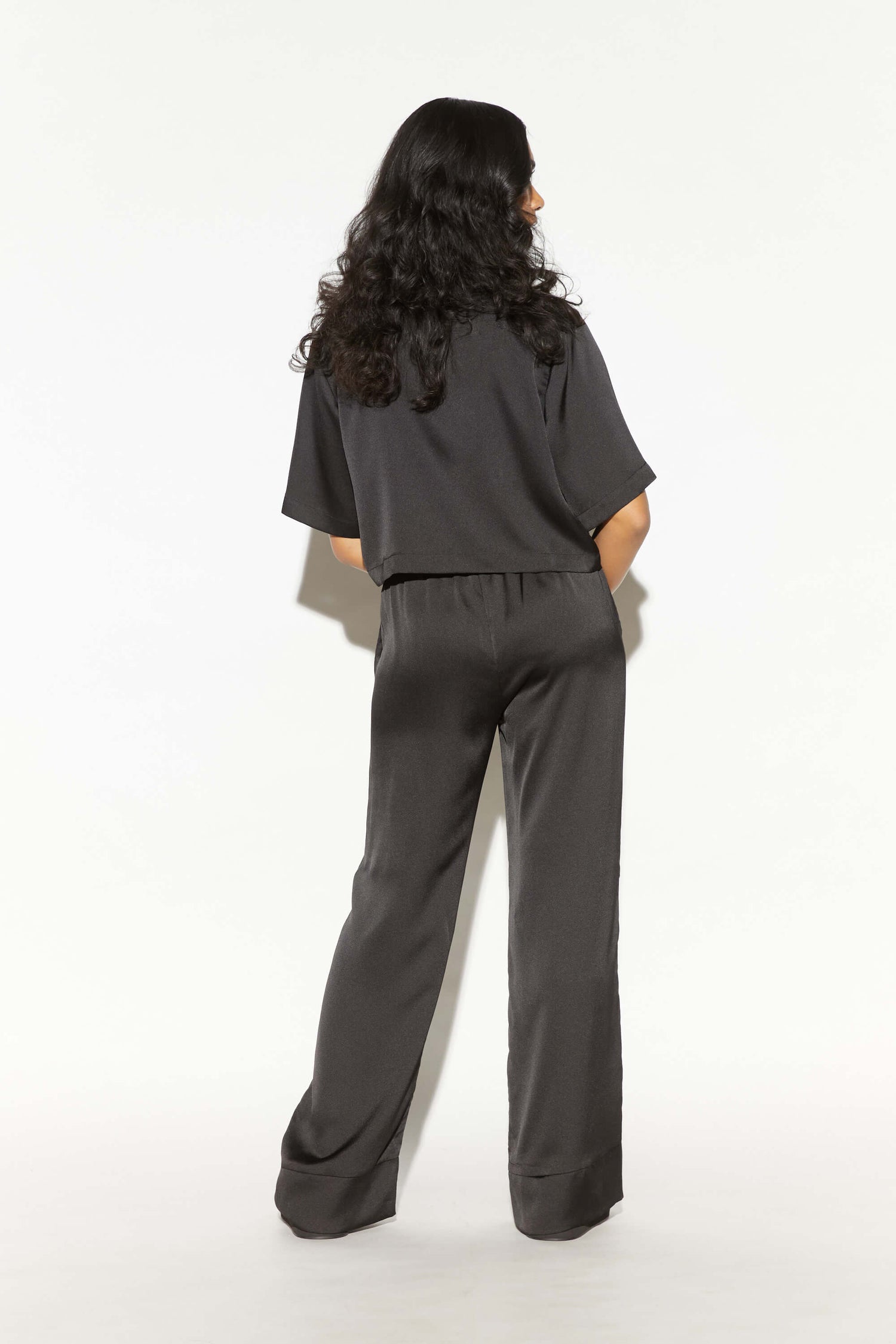 Get extra cozy and pair it with our SANDRA wide leg vegan silk pant in Noir for a complete look.