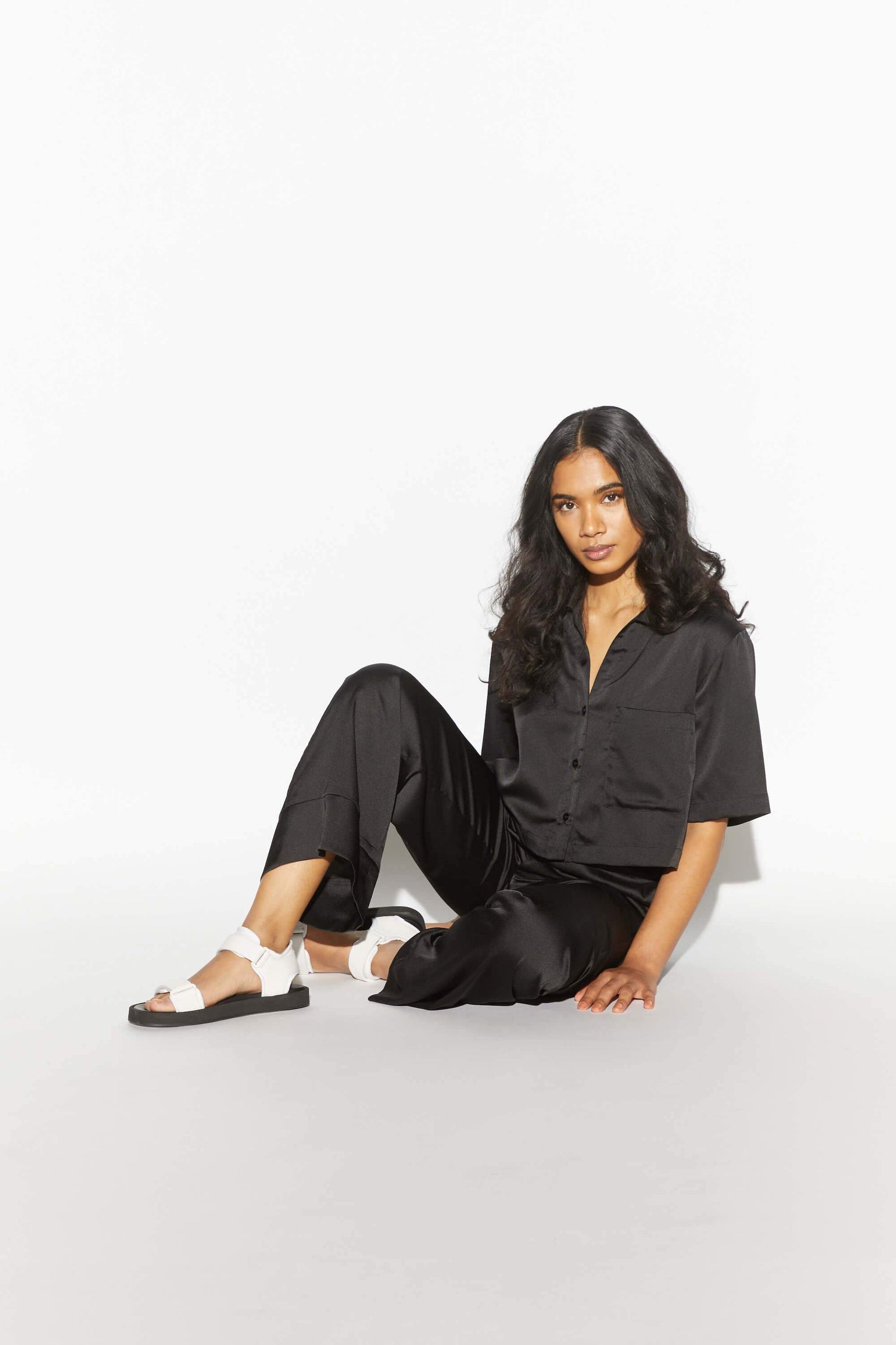 You'll be lounging in style in our SYLVIE relaxed vegan silk shirt.