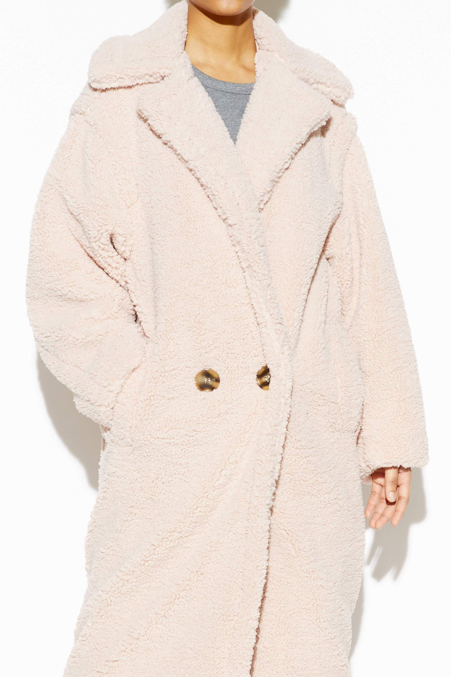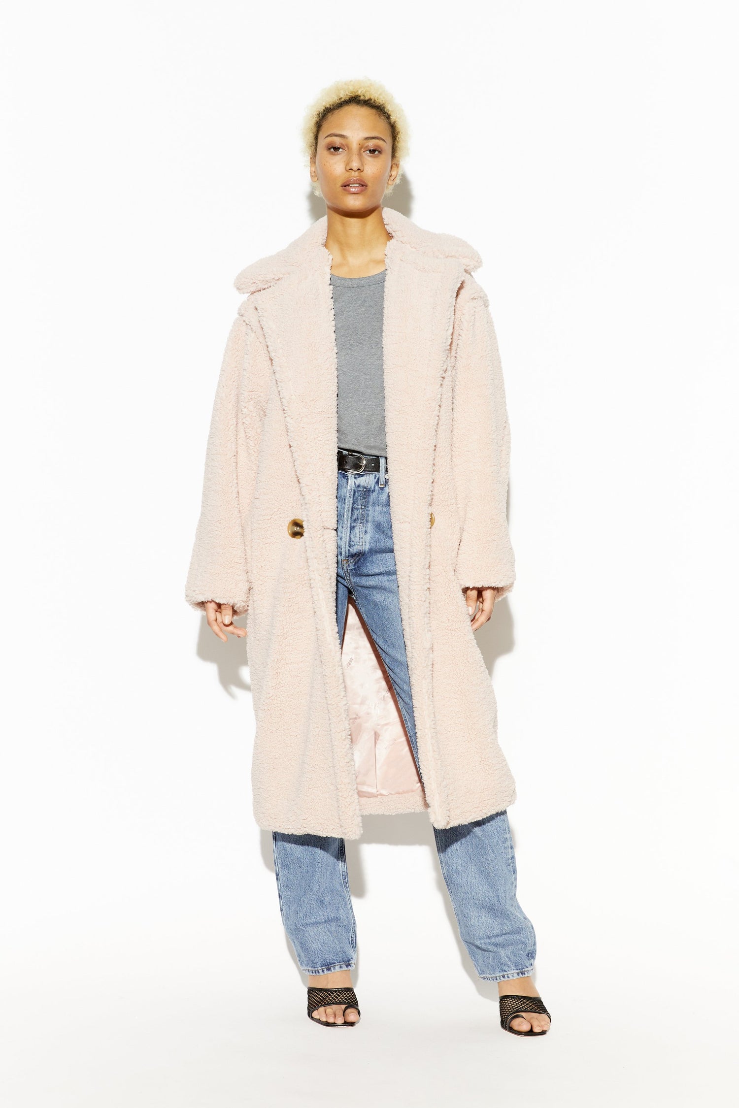 Yaya is 5'7" with a 32" bust and is wearing size S. Coat length: 42”. Sleeve length: 20.6". Oversized fit: It’s a look—bold and edgy, comfy chic. This style has plenty of room for tees, sweaters, whatever, so layer away. If you’re petite or want a closer fit, size down.