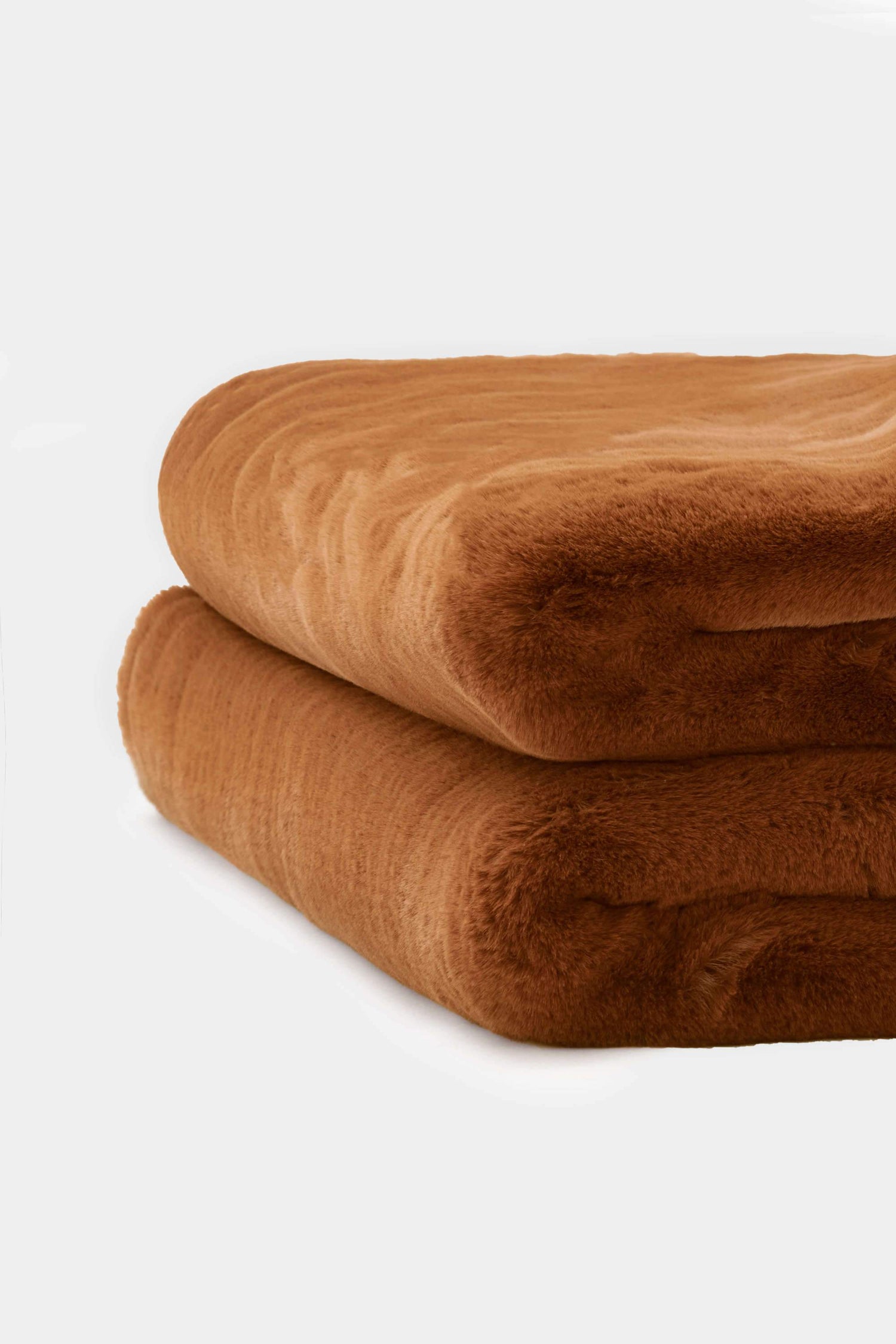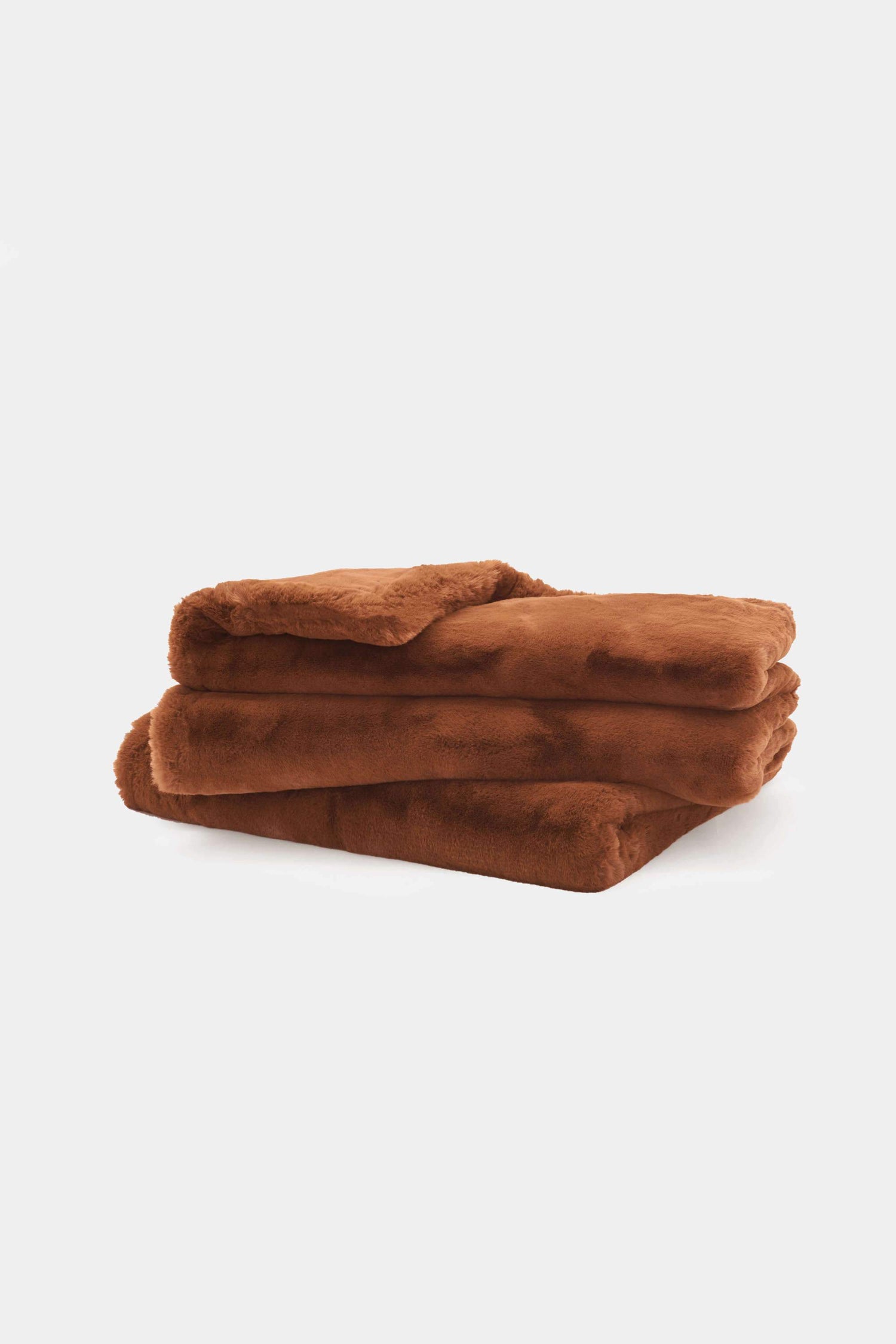 Double sided blanket made with our iconic PlucheTM faux fur. Your improved weighted blanket. Approx 8 lbs. Extra soft and fluffy, this blanket will upgrade your chill time.