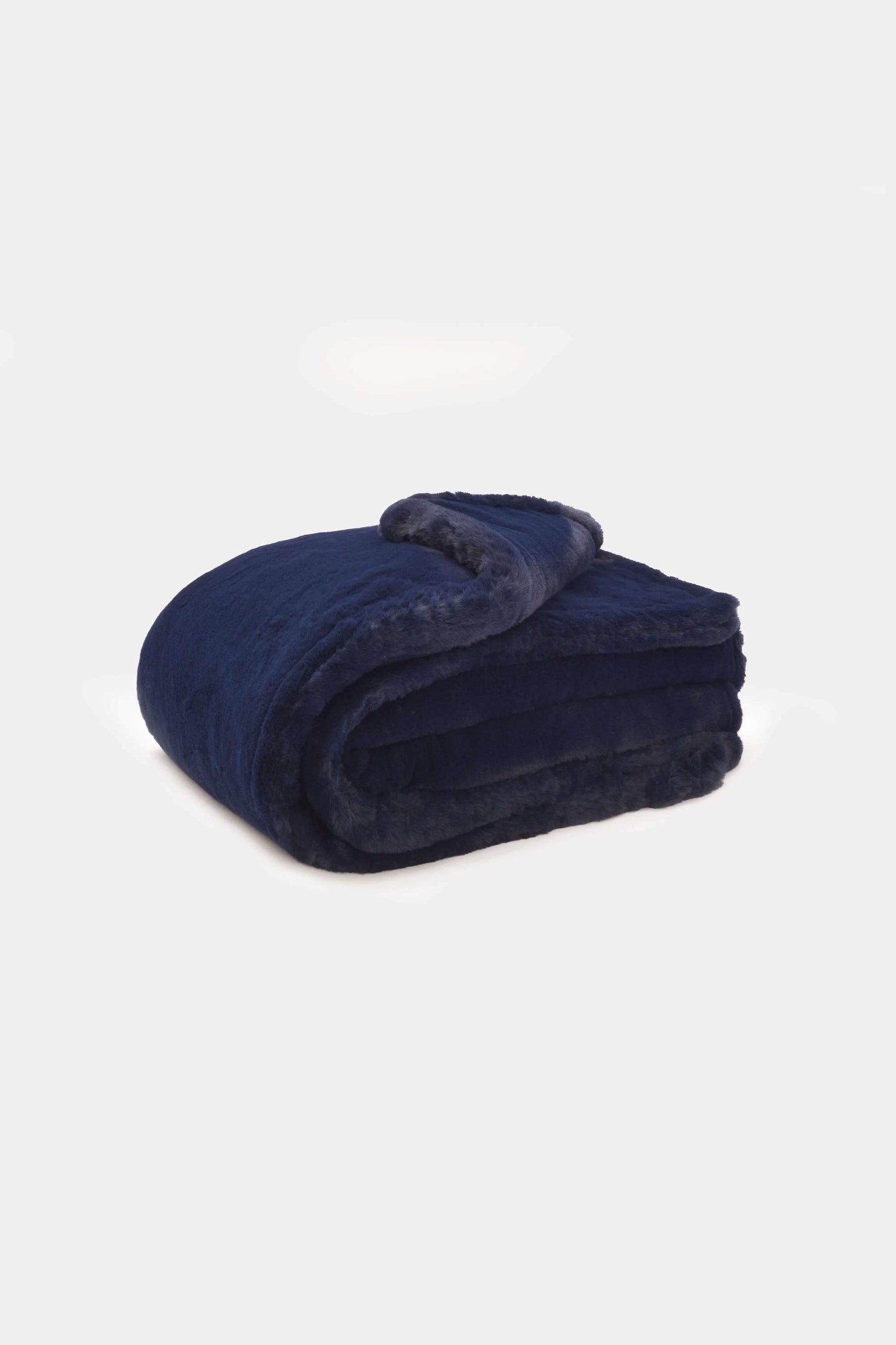 Larger size, fluffier faux fur and heavier blanket in comparison to The Brady blanket.